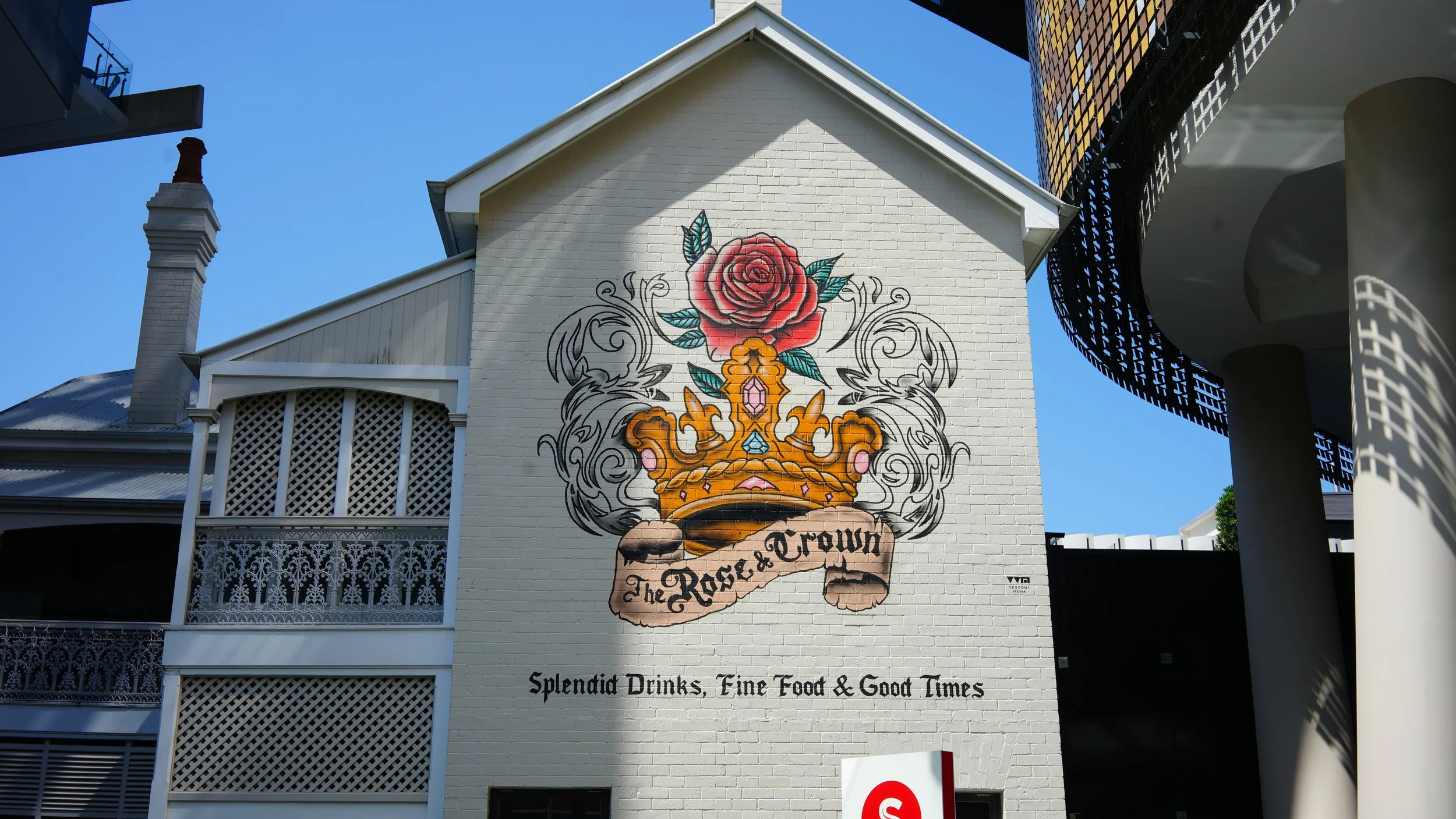 Our latest Large scale mural project for The Rose and Crown, Southbank Brisbane. Located on the popular Grey St Southbank, This large scale mural was born from a rough sketch the owners son had done for the space. When Signright Australia Approached us to design and execute this mural, we jumped on the opportunity instantly. We had the pleasure of recreating the original sketch, to the final mural artwork.
